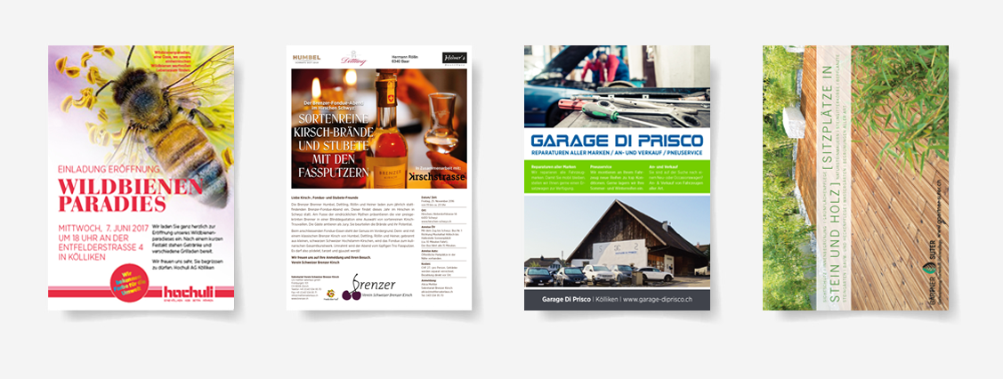 Wir kreieren Logos, gestalten Broschüren oder Briefschaften. Natürlich übernehmen wir auch gerne die drucktechnische Kontrolle Ihrer gelieferten Daten.
